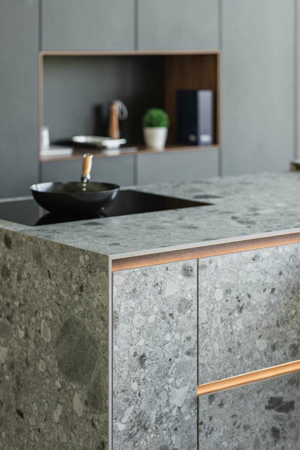 Großkeramik verleiht der Küche ein nahezu fugenloses, modernes Design mit Naturstein-Optik. Ob Arbeitsplatten, Spülen, Nischen oder Fronten – die vielseitigen Einsatzbereiche unserer Keramik bieten dir nahezu grenzenlose Gestaltungsmöglichkeiten.