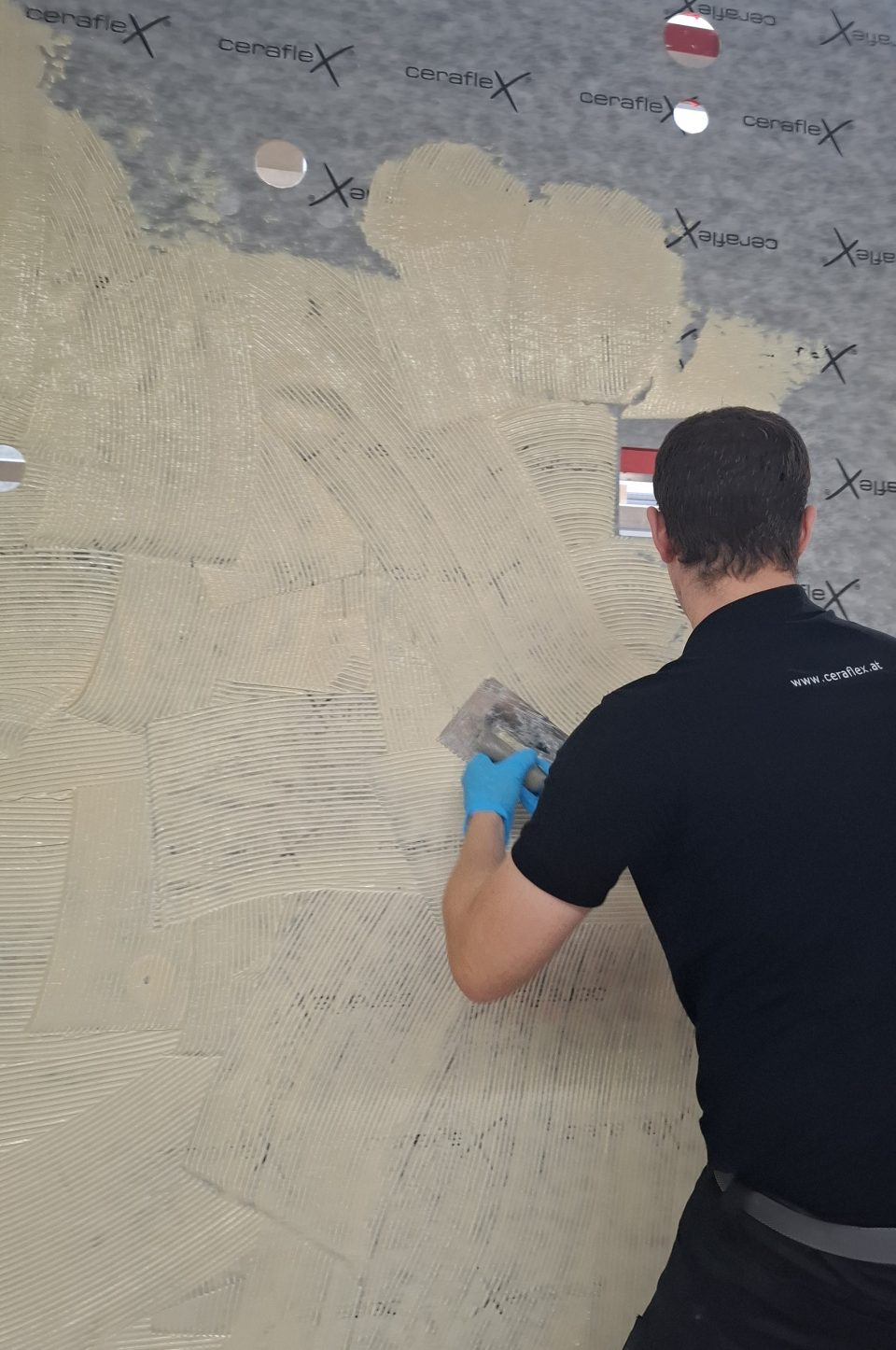 Großkeramik-Wandelement mit integrierter Abdichtung
