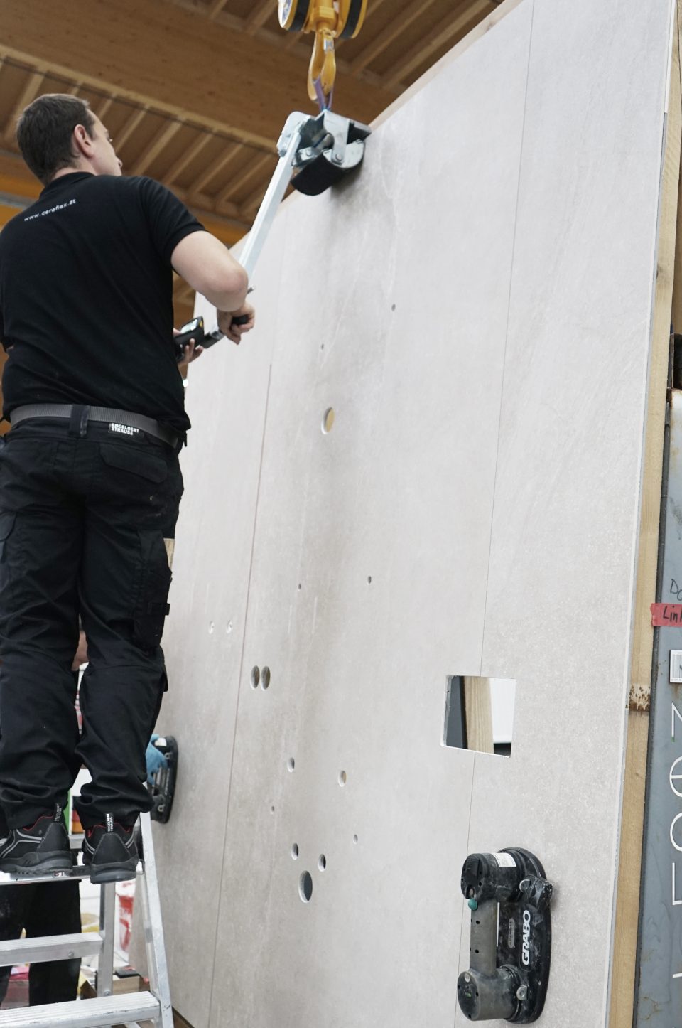 Die Wandelemente aus Großkeramik überzeugen nicht nur durch ihr ansprechendes Design sondern auch durch die herausragenden pflegeleichten und widerstandsfähigen Eigenschaften.