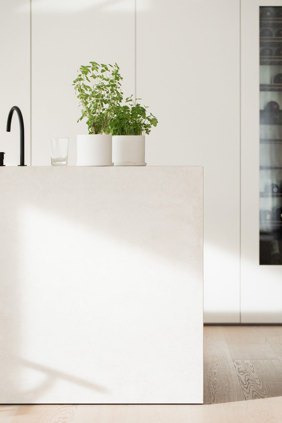 Das Privathaus ist ein beeindruckendes Beispiel für zeitlose Ästhetik, nachhaltige Materialien und durchdachte Gestaltung. Dezente Naturtöne in Kombination mit edlen, langlebigen Materialien schaffen eine beruhigende und einladende Atmosphäre, die sich durch das gesamte Haus zieht. Bereits in der Lobby wird der besondere Charme des Hauses sichtbar. Die Rezeptions-Insel in der Keramikfarbe Iseo und die passenden Bodenplatten sind der Hingucker im Eingangs-und Restaurantbereich und sorgen gemeinsam mit liebevollen Details für ein einladendes Ambiente.